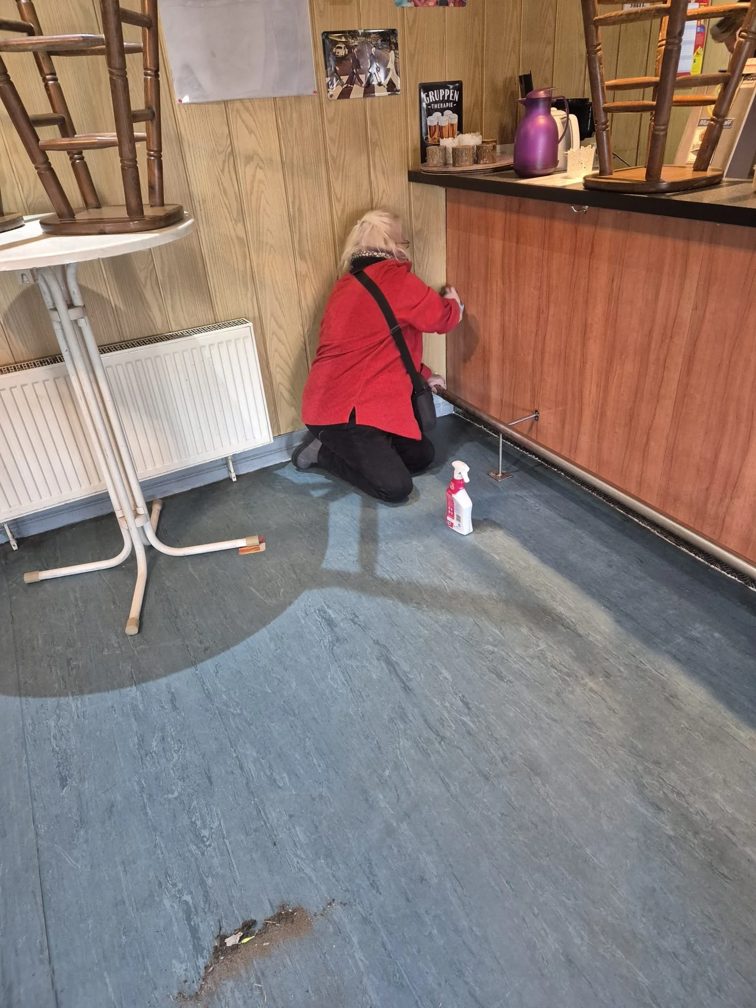 vielen Dank an Karen, Liane und Heike, die nun schon in der zweiten Woche fleißig die Kantine geputzt haben. Ein herzliches Dankeschön auch an Bäumchen, die bereits die Gardinen für uns gewaschen hat.