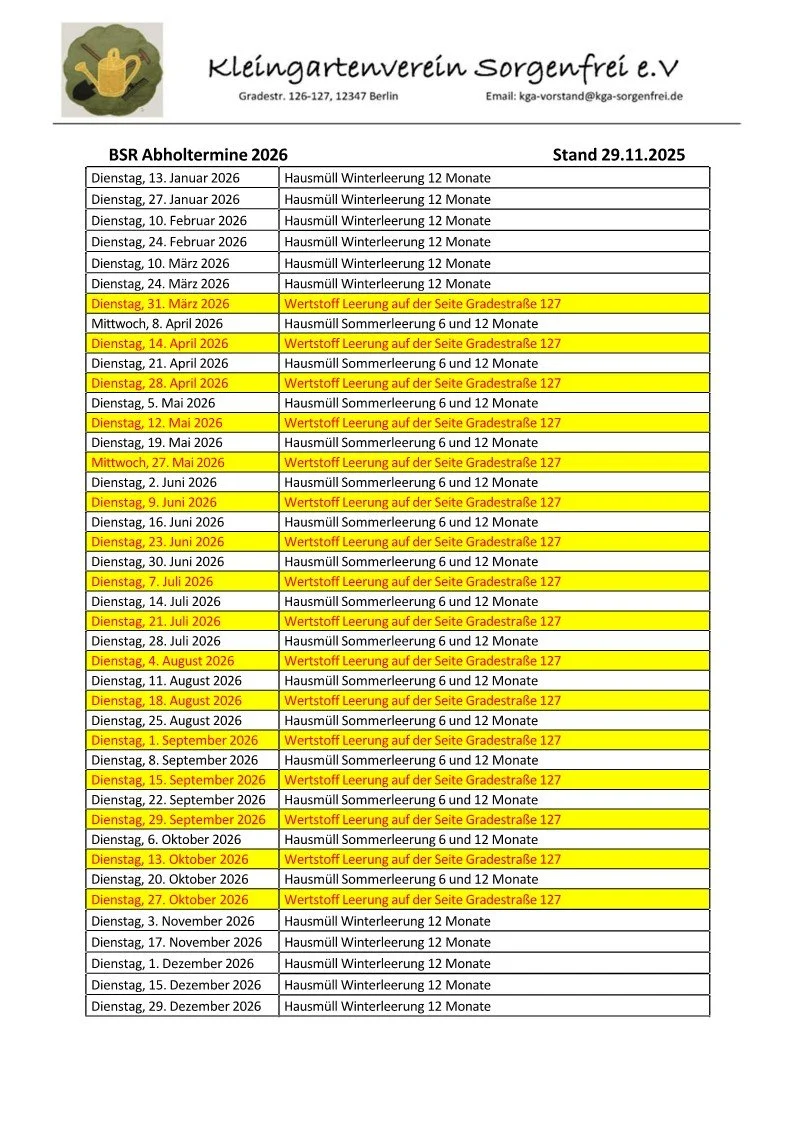 BSR-Abholtermine 2026